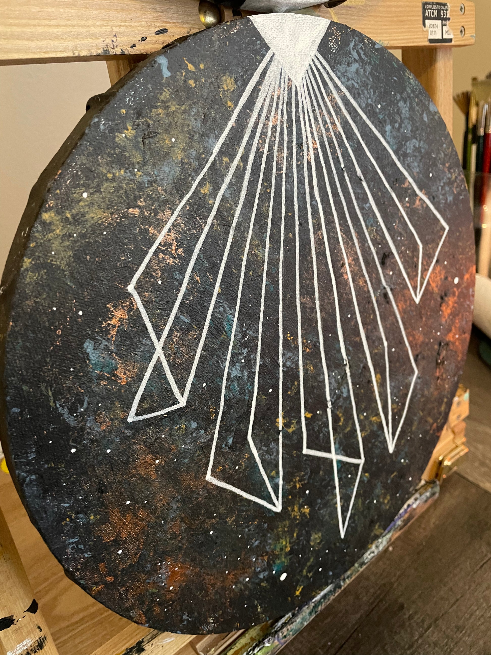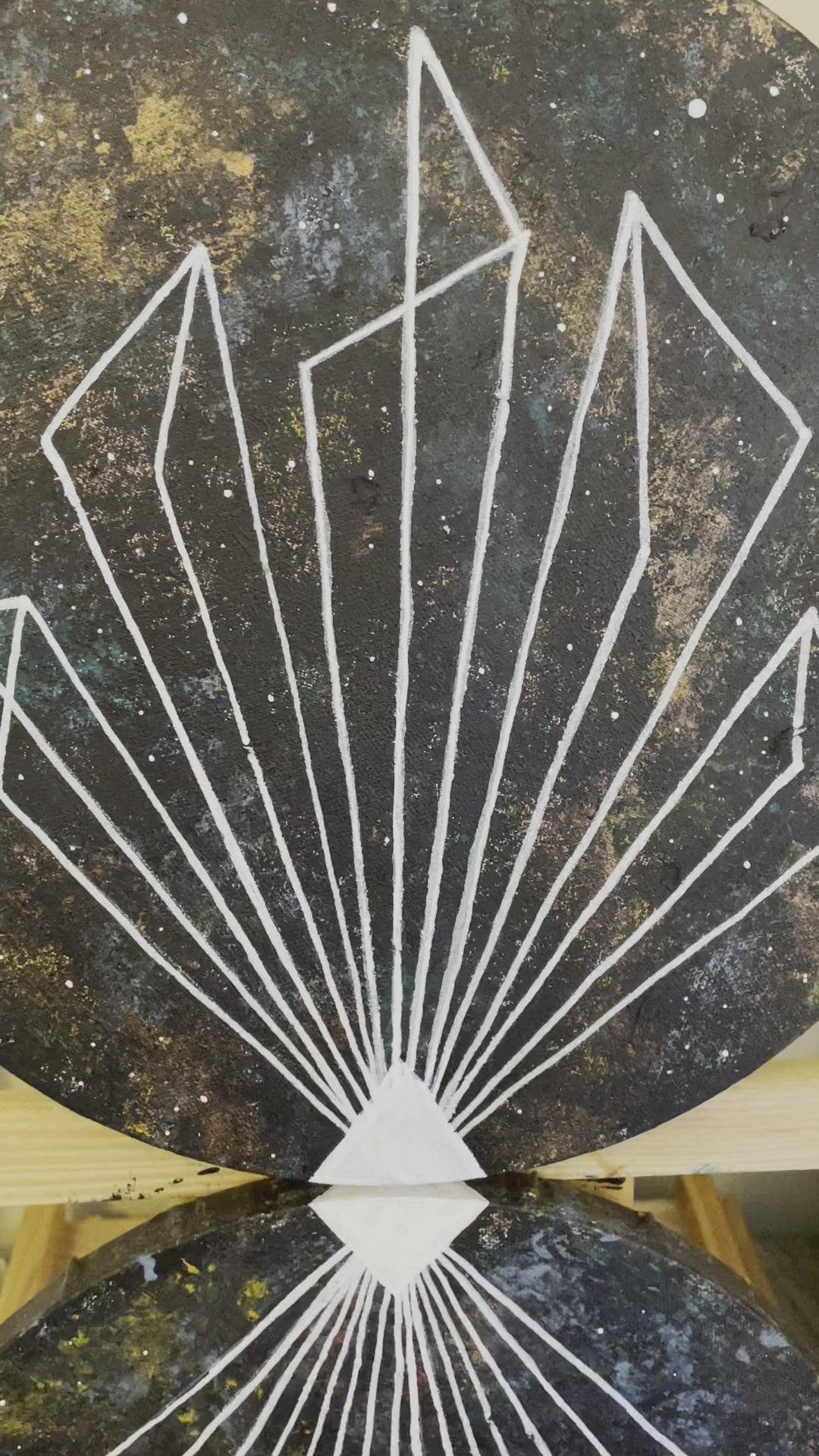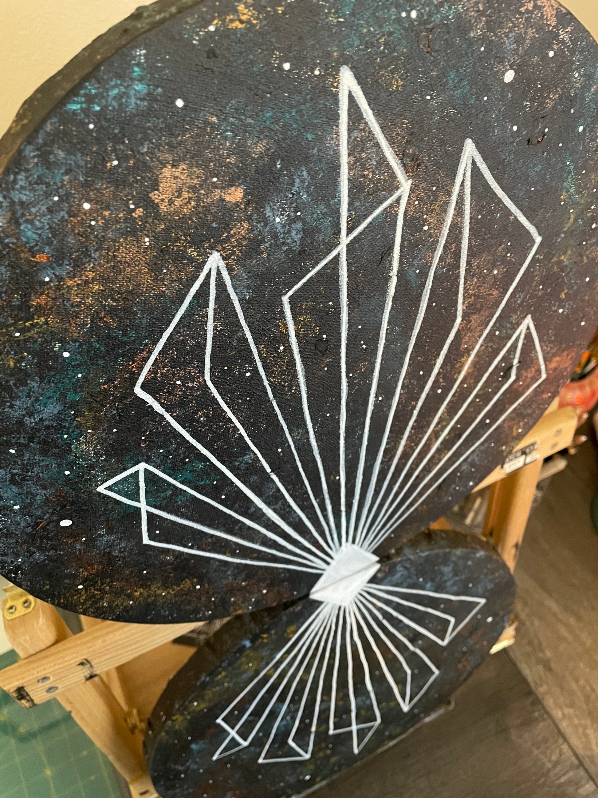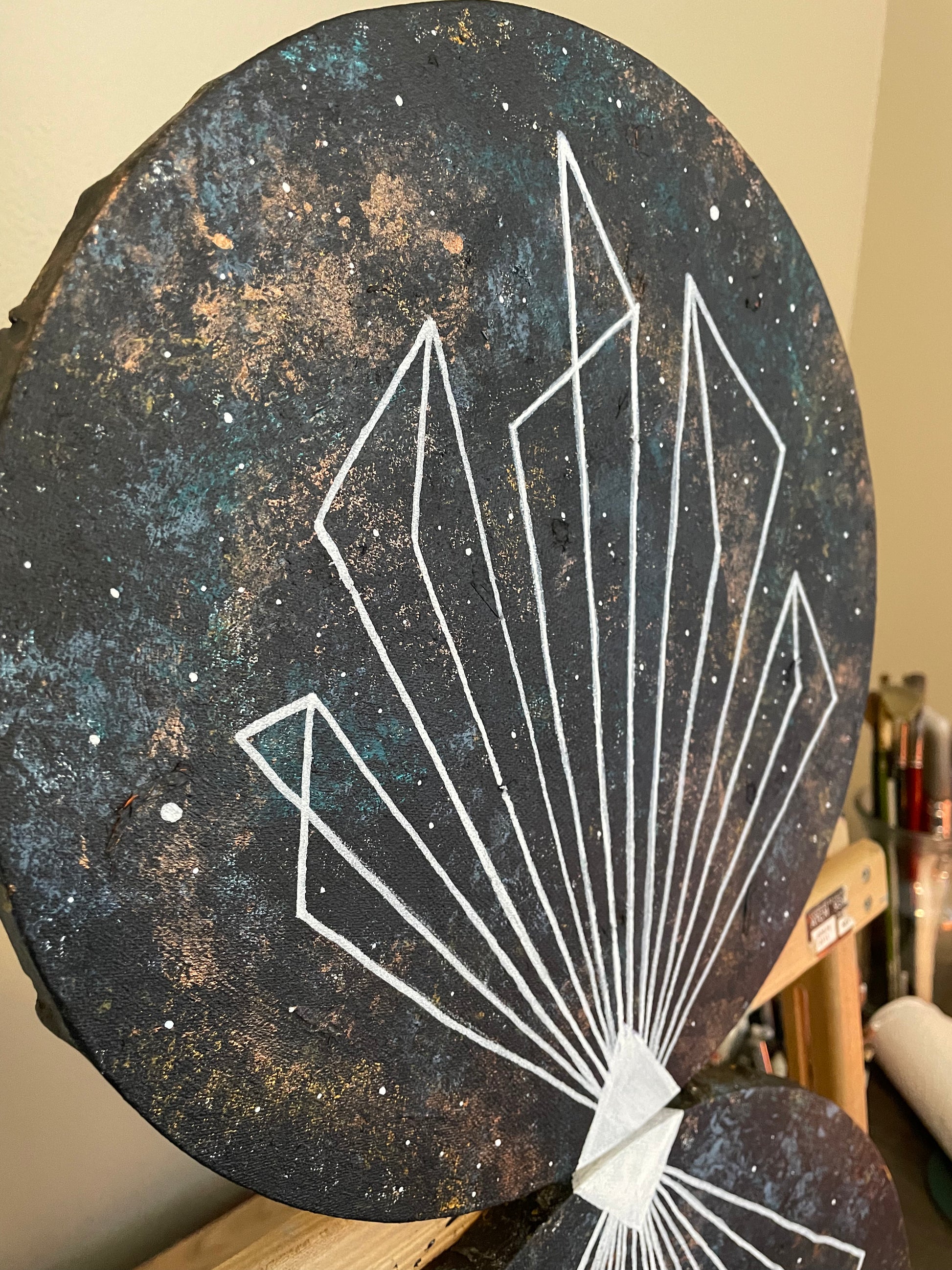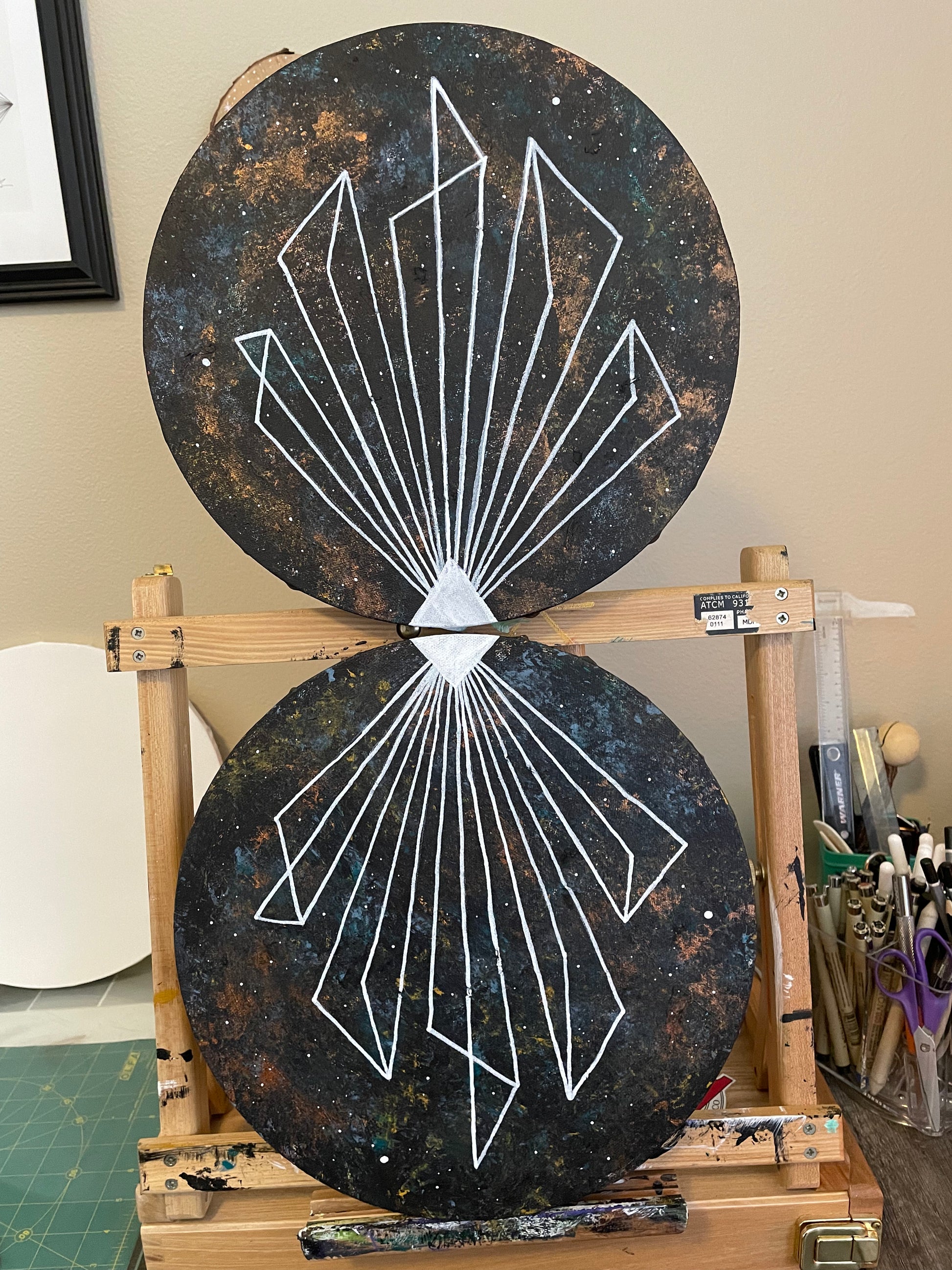 “Vectors” 12 inch round double canvas mixed media and acrylic paintings. These can only be bought together.